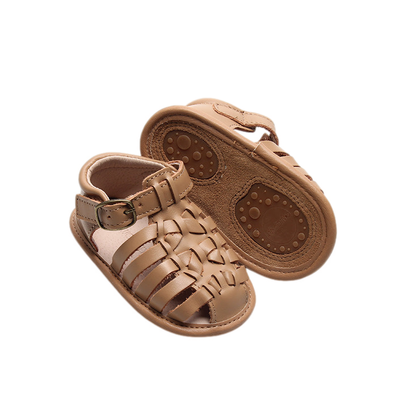 Introducing our newest sandal style! The "Indie Sandal". This beautiful closed toe sandal preserves traditional craftsmanship style, yet with a modern twist. Designed for boys and girls, it comes with a cushioned insole to ensure low impact, and a cushioned ankle support that will provide extra support to first time walkers.