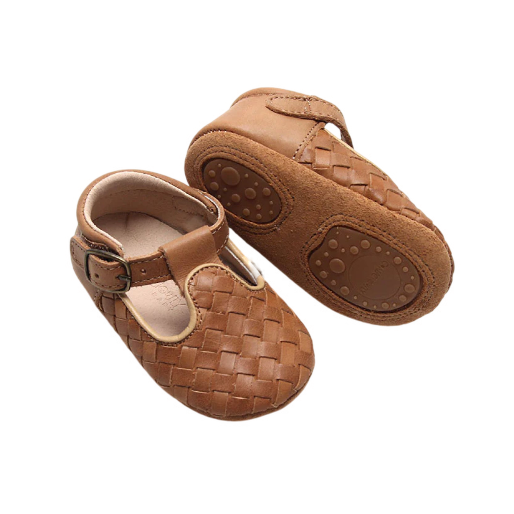 Leather Woven T-Bar | Color 'Walnut' | Soft Sole