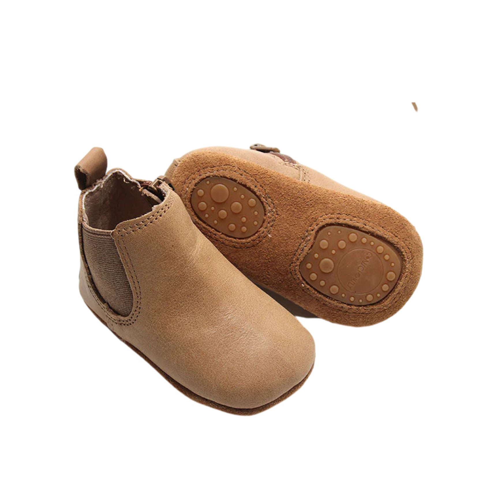 These gender neutral boots are Inspired by the classic chelsea style with a modern twist. Hand made from top-level Waxed Genuine Leather. They come with an Elastic band on the outer side, and a Zip on the inner side, making them easy to put on and take off. All Consciously Baby soft soles are designed to allow for unrestrained movement, so your little one can move around with ease.