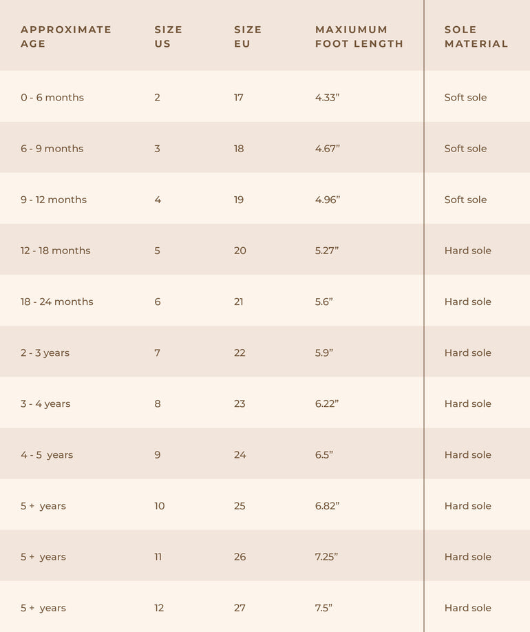 - Don't rely solely on the age range indicated on the size guide, as every baby is different. Instead, use the measurements of your baby's feet as the primary guide.