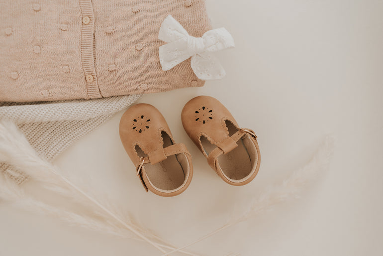 Leather Petal T-Bar | Color 'Aged Camel' | Hard Sole